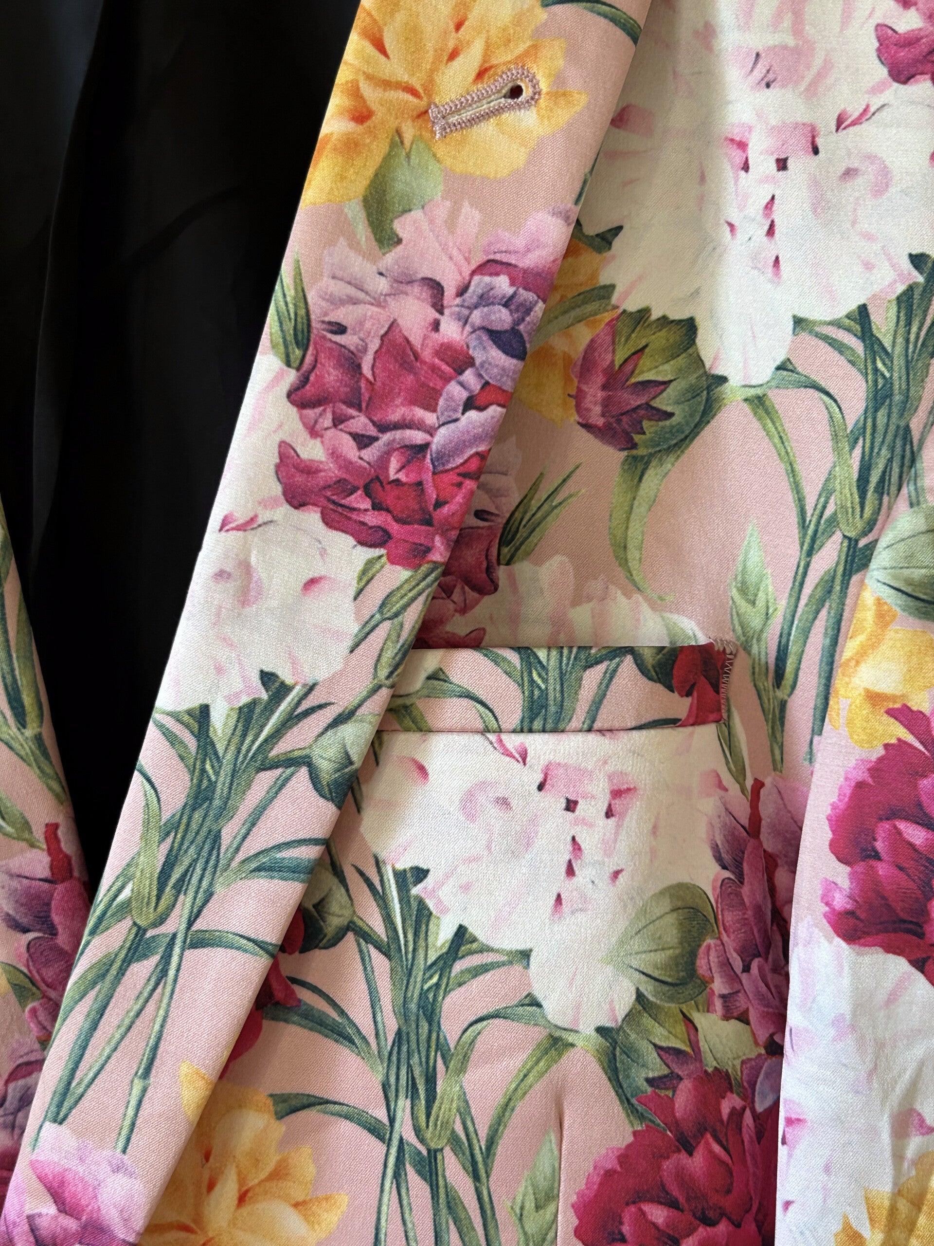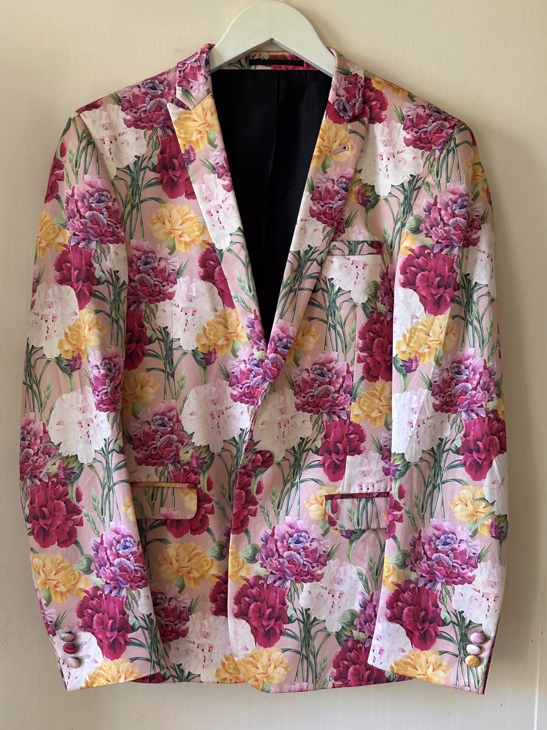 Blommig unisex kavaj i sidenimitation storlek 48 (herr)