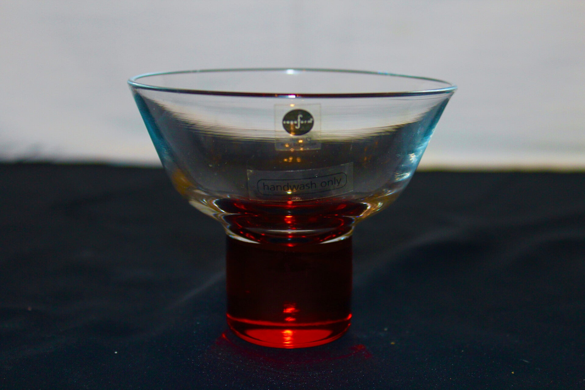 4 st. Cocktailglas med olikfärgade fötter från Haga Design, den gröna foten färgen något skavd.