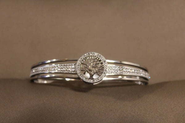 Armband med "livets träd" och Cubus zirkonium stenar. Öppnas och stängs med fjäder
