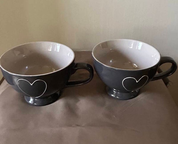 2 rejält tilltagna tekoppar med hjärta ♥️ dekor