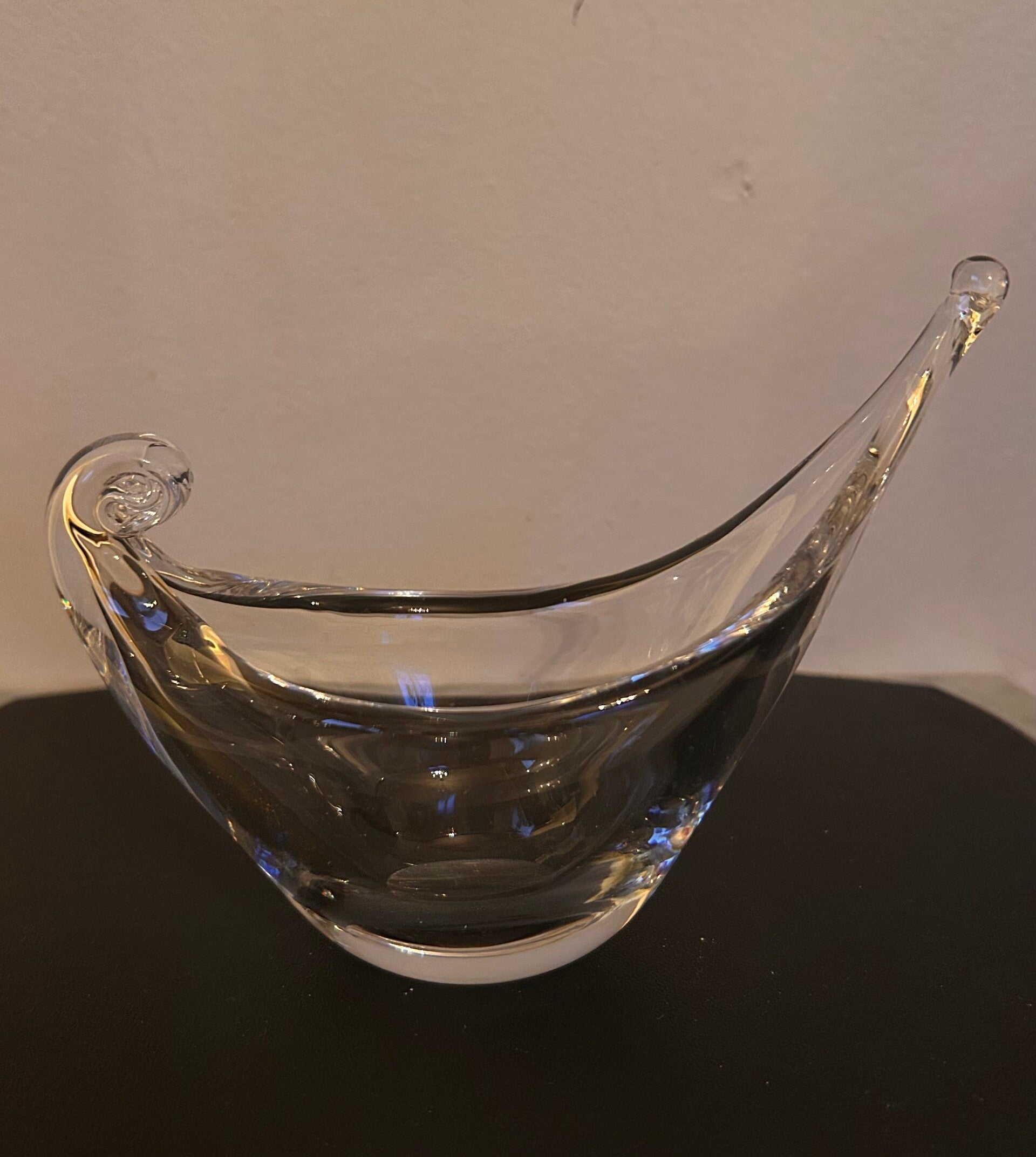 Konstglas i form av båtformad skål 15×8 cm, 4 cm djup