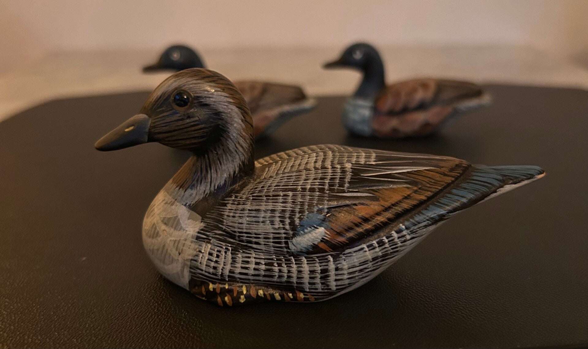 Liten fin familj av änder i keramik. Mamma and 10 cm, barn änder två stycken 6 cm.