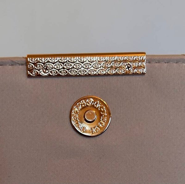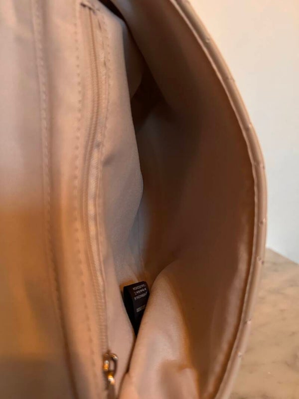 Axelväska i konstläder med gulddetaljer, axelrem i guldfärgadkedja.