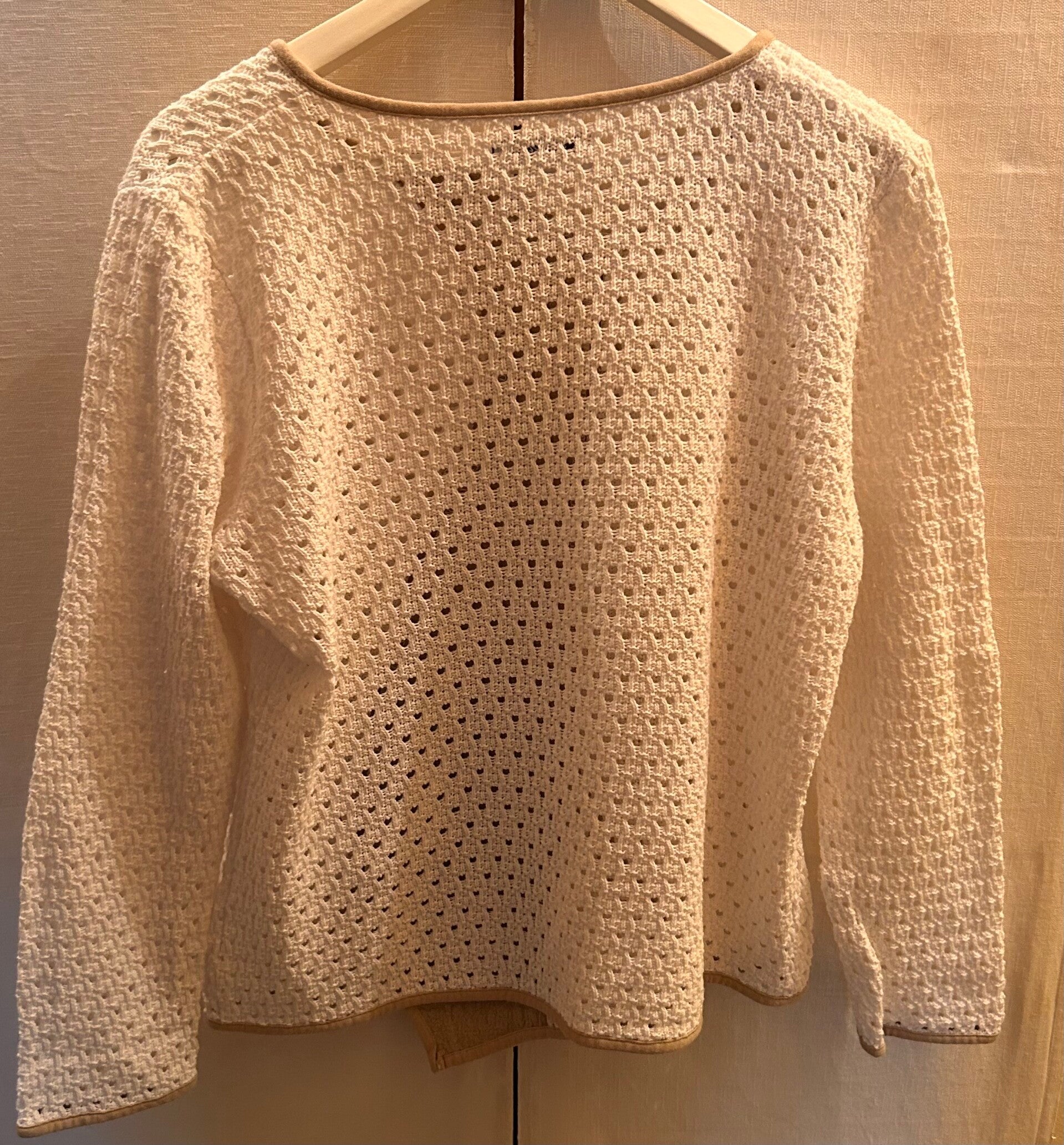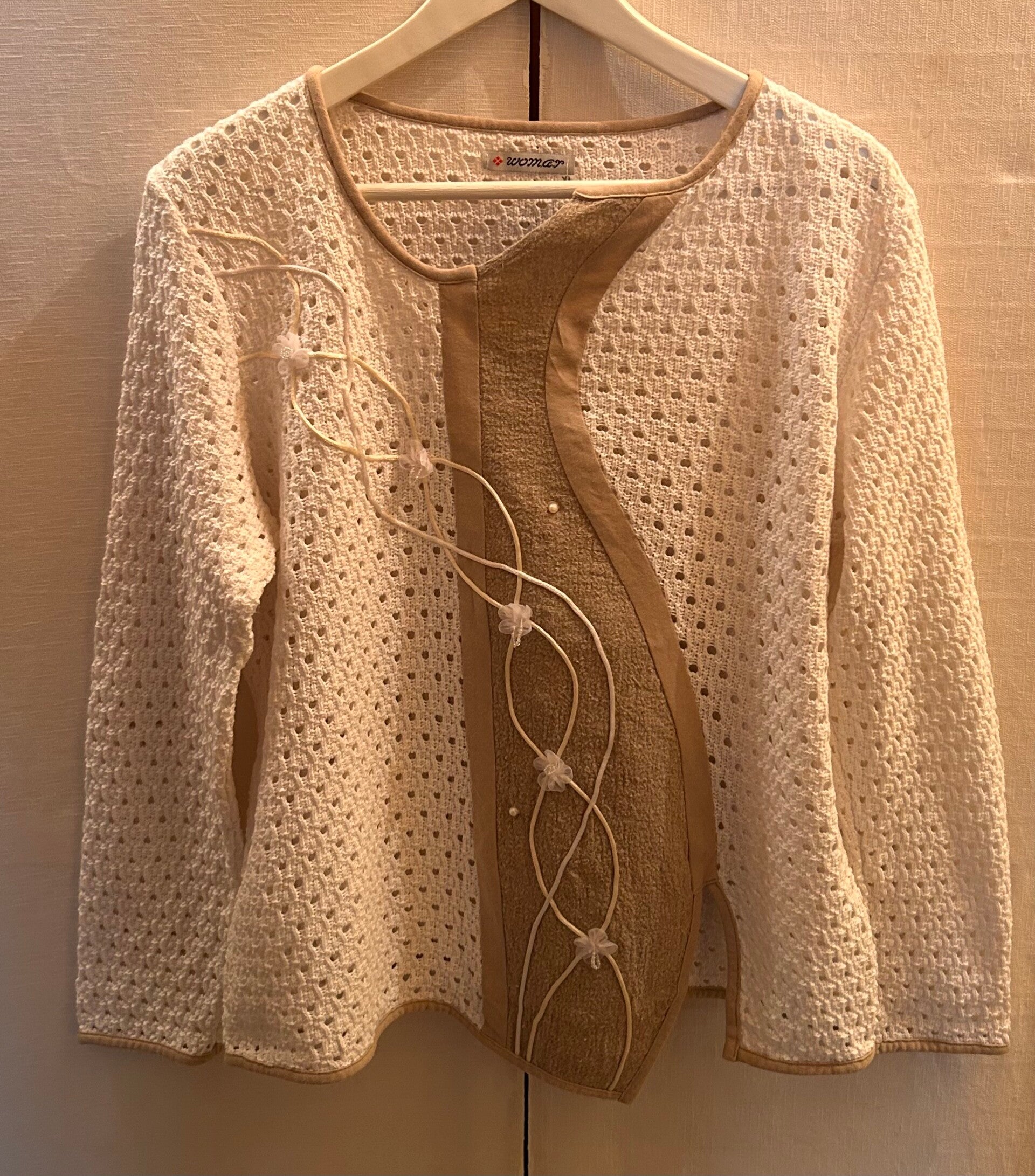 Stickad tunn tröja med små blommor och pärlor. Storlek medium